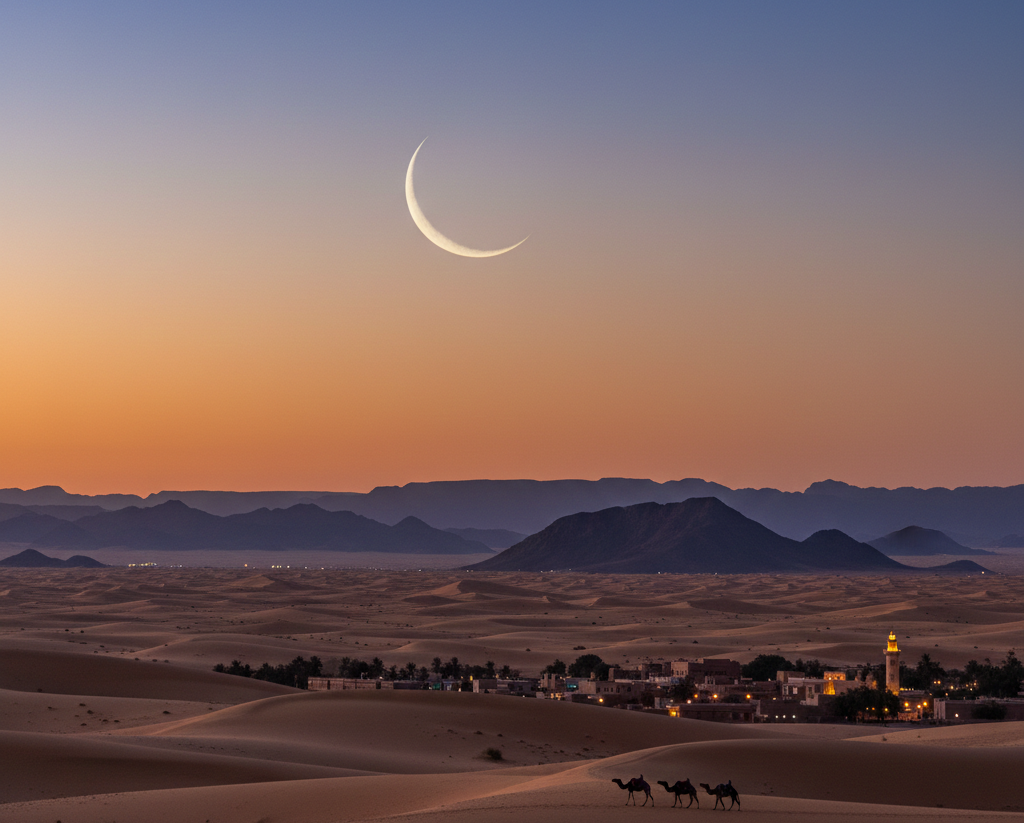 Ilustrasi bulan Sabit Terlihat di Arab Saudi, Ramadan 1447 H Dimulai 17 Februari 2026. Dok : Kabar Muslim/Gemini.