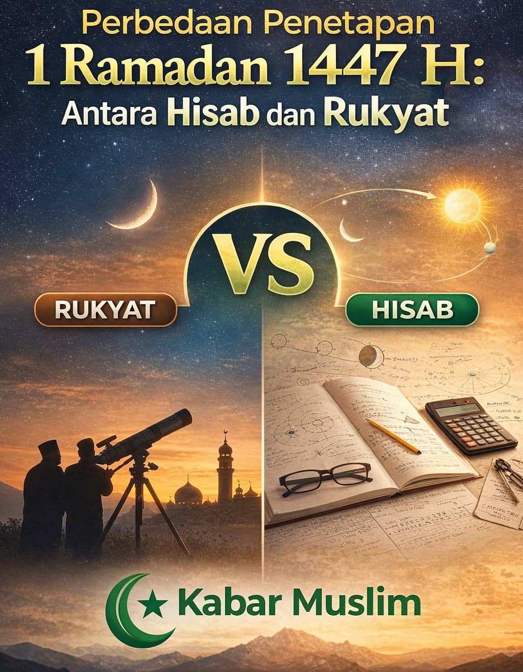 JAKARTA, KABAR MUSLIM– Ramadan 1447 Hijriah kembali menghadirkan satu tema klasik yang selalu hangat diperbincangkan umat Islam Indonesia: perbedaan penetapan awal puasa. Di tengah kemajuan teknologi astronomi dan sistem kalender modern, diskursus hisab dan rukyat tetap hidup—bahkan kerap menjadi perdebatan publik yang meluas hingga media sosial.